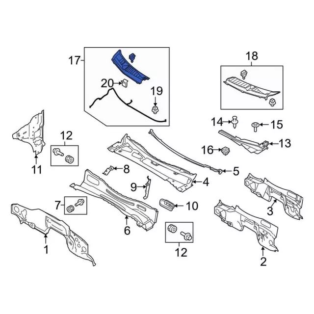 Shop Genuine OEM Ford Parts Online - HC3Z-25022A68-AB Ford Part Number, this part number refers to the Cowl Grille and is used in the following Ford Fitment Applications: 2017-2022 Ford